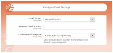 Es ist wichtig, den Kunden darüber zu informieren, ob ihre Stornierungsanfrage genehmigt oder abgelehnt wurde. Die Erweiterung sendet dem Kunden eine E-Mail, sobald auf seine Anfrage reagiert wurde. Wählen Sie einen E-Mail-Sender und eine Vorlage aus, um die E-Mail zu personalisieren.