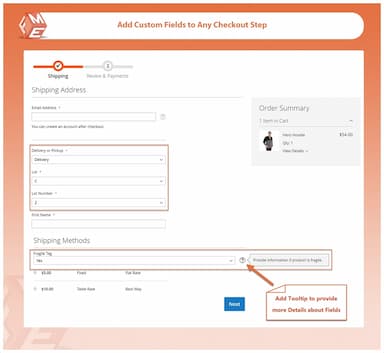 Die standardmäßige Magento 2 Checkout-Seite bietet nur begrenzte Felder, was die Erfassung wichtiger Kundendaten erschwert. Unternehmen benötigen oft benutzerdefinierte Bestellattribute für Versandanweisungen, Mehrwertsteuerdetails oder Marktforschung, aber es gibt keine integrierte Lösung, um diese hinzuzufügen.