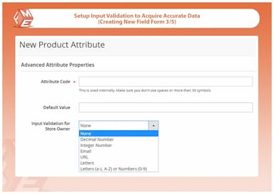 Verwenden Sie die Eingabevalidierung für die neu hinzugefügten benutzerdefinierten Bestellattribute. Validierungen können beinhalten: