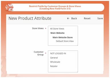 Verwalten Sie die Sichtbarkeit Ihres benutzerdefinierten Bestellattributs basierend auf bestimmten Shop-Ansichten und Kundengruppen. Kunden aus erlaubten Shop-Ansichten und Gruppen können die Attribute auf der Checkout-Seite anzeigen.