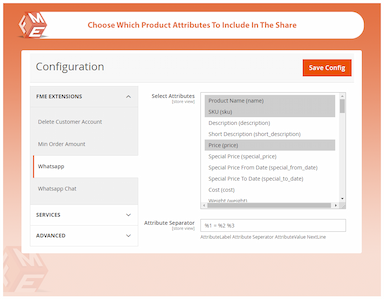 Wählen Sie die spezifischen Produktattribute aus, die Sie teilen möchten. Sie können alle wichtigen Attribute wie Produktname, Beschreibung, Preis, SKU, Farbe, Hersteller usw. teilen. Passen Sie Ihre WhatsApp-Freigabe an, um die Details hervorzuheben, die für Ihr Publikum am wichtigsten sind, um die Relevanz und Wirkung Ihrer Produktfreigaben zu steigern.