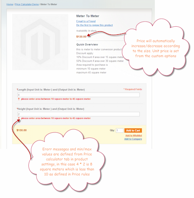 Sobald der Kunde den Messwert wie Länge, Breite und Höhe des Produkts eingibt, berechnet diese Erweiterung automatisch den Gesamtpreis des Produkts, den der Kunde zum Warenkorb hinzufügen und auschecken kann. Der Preis ändert sich, wenn der Kunde die Messwerte ändert.