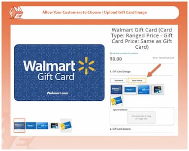 Los clientes pueden cargar o elegir entre las imágenes de tarjetas de regalo disponibles