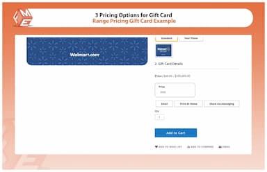 - Precio por rango: Establecer un rango, por ejemplo, $10-100, para que los clientes puedan personalizar el valor de su tarjeta de regalo.
