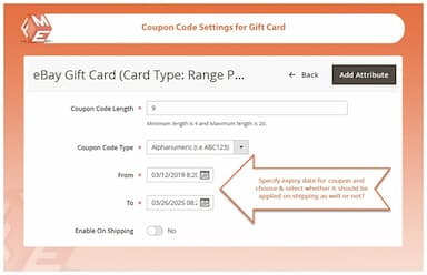 - Crear automáticamente un código de cupón para adjuntar a la tarjeta de regalo.