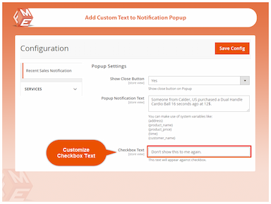 No debe comprometer la experiencia del usuario. Permita a los clientes que no deseen ver notificaciones de ventas elegir no hacerlo mediante la visualización de una casilla de verificación. Es una casilla basada en la sesión que detiene las notificaciones emergentes para el usuario.