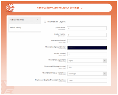 Configure los ajustes de pulgar, los pulgares de tira, la configuración de cuadrícula y control deslizante del complemento de la galería multimedia.