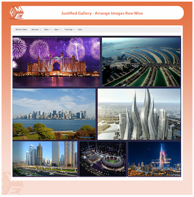 La galería justificada muestra tus imágenes y videos de forma ordenada en formato de fila.