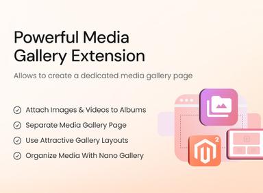 La extensión de galería multimedia para Magento 2 te permite crear una impresionante exhibición de medios mostrando imágenes y videos en una página de galería dedicada. Mejora la experiencia del usuario, atrae a los visitantes y aumenta las conversiones con múltiples opciones de diseño, miniaturas personalizables e integración fluida con páginas de productos, categorías y CMS.
