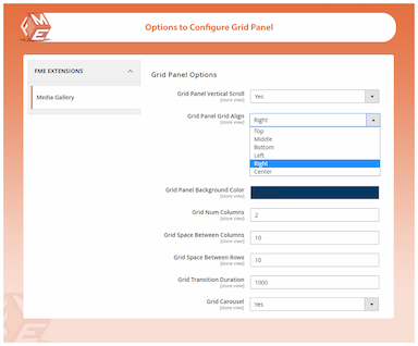 Habilite/Personalice su panel de cuadrícula ajustando su alineación, duración de la transición y cambiando el espacio entre columnas y filas.