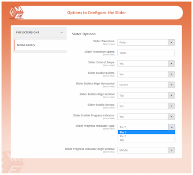 Con la configuración de personalización del control deslizante, puede habilitar/personalizar la transición del control deslizante, viñetas y flechas, indicador de estado, línea de barra de progreso o circular, botones de control como reproducción o pantalla completa.