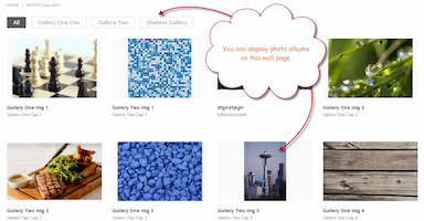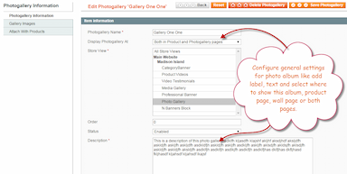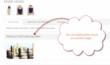 With predefined codes you can display your photo album on any page of your website. You can add photo album to Product, Category, Home, Blog and other CMS pages with custom styles. To learn more about it you can check our plugin demo and user guide.