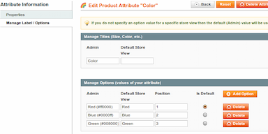 - L'administrateur peut entrer le code attribut utilisé pour les options de couleur.