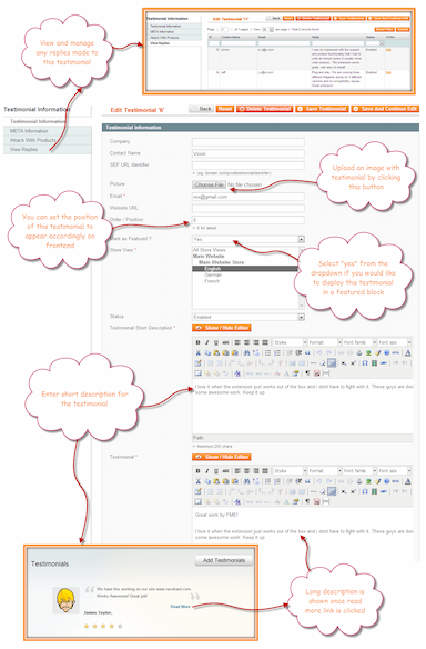 L'extension d'évaluation par étoiles Magento crée une page dédiée où vous pouvez afficher les témoignages généraux et spécifiques aux produits.