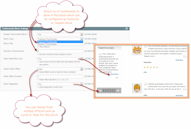 Activer un bloc pour afficher des témoignages en vedette ou aléatoires n'importe où sur votre site web.
