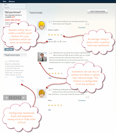 Les visiteurs d'un magasin sont désireux de savoir ce que leurs clients disent de leurs produits. Les témoignages sont les premiers éléments pour évaluer la satisfaction de la clientèle. Ils peuvent bénéficier des avantages suivants après l'installation de cette extension :