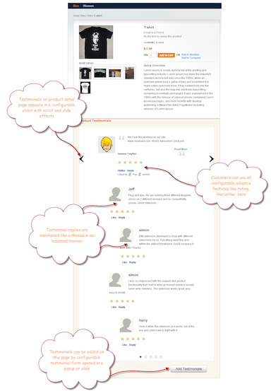 Bloc de Curseur de Témoignages dans le Module d'Avis Produits de Magento