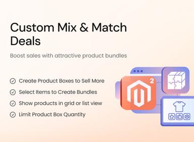 L'extension Magento Mix & Match vous permet de créer des boîtes de produits avec des articles similaires ou variés pour garantir des ventes plus élevées et équilibrées de votre catalogue. Créez plusieurs boîtes avec des offres et des remises pour encourager les achats en gros.