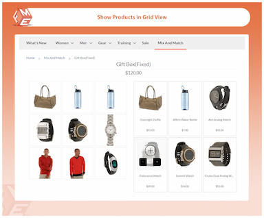 L'extension vous permet d'afficher les produits d'un bundle soit sous forme de grille, soit de liste. Sélectionnez la vue de la boîte selon ce qui convient aux utilisateurs finaux de votre boutique en ligne.