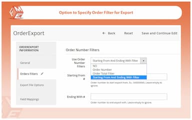 L'extension d'exportation de commandes Magento 2 simplifie l'extraction d'informations concernant des commandes spécifiques en utilisant divers filtres. L'un des filtres est le numéro de commande qui vous permet d'exporter des commandes au format CSV selon leurs numéros. Par exemple, vous pouvez exporter une commande avec le numéro de série 120001 ou exporter une plage de numéros de commande, par exemple de 120451 à 120650.