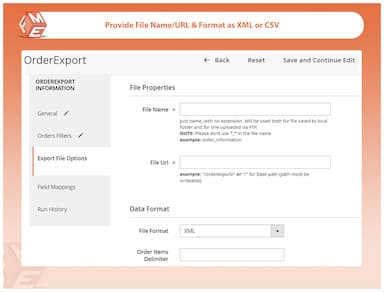 Vous pouvez envoyer les détails de la commande extraite à une adresse e-mail fournie. Avec cela, vous pouvez planifier l'extraction des données et les recevoir dans votre boîte e-mail professionnelle. Vous pouvez sélectionner le fichier à extraire au format CSV ou XML.
