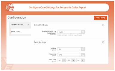 En créant une tâche Cron, vous pouvez configurer l'exportation des commandes avec une fréquence et une régularité définies. Vous pouvez décider d'extraire les commandes quotidiennement, hebdomadairement ou mensuellement. Préférez un moment pour commencer l'extraction des commandes en fonction de la fréquence choisie.