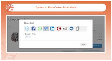 Les clients peuvent partager des paniers sur plusieurs plateformes de médias sociaux via une liste de widgets disponibles sur la page du panier. Cela permet à vos produits d'obtenir une plus grande visibilité sur différentes plateformes de médias sociaux telles que Facebook, Twitter, WhatsApp, LinkedIn, Pinterest, Reddit ou VK.