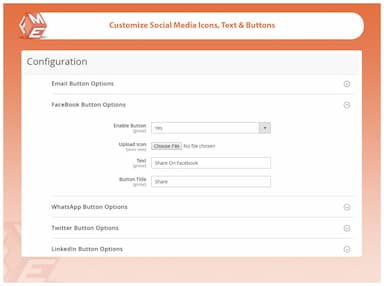 Avec cette extension Save Cart & Share Cart, vous pouvez activer/désactiver n'importe quel bouton de médias sociaux et configurer les paramètres suivants pour chaque bouton de médias sociaux :