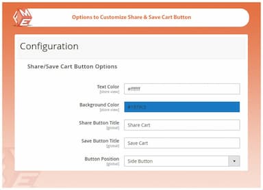 L'extension vous permet de personnaliser les boutons de partage et d'enregistrement du panier, ainsi que de définir leur position au milieu du panier ou sur le côté droit de votre page de panier, sous le bouton de paiement.