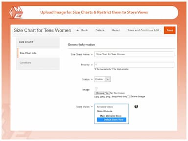 Cette extension Tableau des Tailles de Magento 2 vous permet de restreindre les tableaux de tailles par boutiques en ligne. Il s'agit d'une fonction pratique pour les magasins internationaux, car le guide des tailles peut varier selon les régions.
