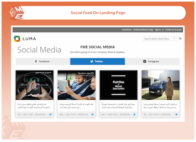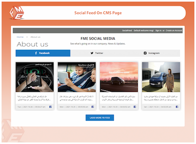 {"{ block class="FME\SocialFeed\Block\Scoialfeedblock" block_id="7" no_tiles="5" enable_fb="1" enable_twitter="1" enable_insta="1" }"}
