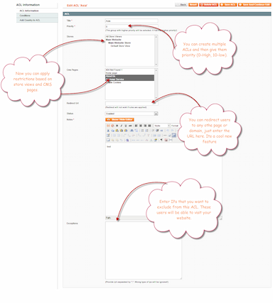 Vous pouvez bloquer l'accès des utilisateurs à l'ensemble du magasin, à un ensemble de produits ou à n'importe quelle page CMS.