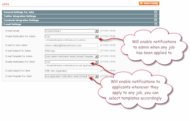 Les notifications par e-mail peuvent être activées pour être informé lorsqu'un candidat postule pour un emploi.