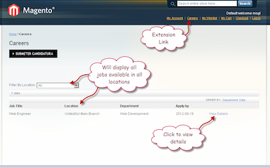 Vous pouvez définir le type d'emploi, le département et les emplacements dans l'extension de recrutement Magento pour faciliter les chercheurs d'emploi.