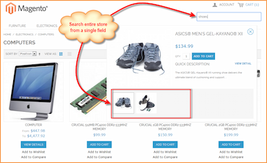Questo modulo migliora la funzionalità di ricerca di Magento e risparmia tempo prezioso ai tuoi potenziali utenti mostrando prodotti che corrispondono alla query che inseriscono nella barra di ricerca. Li aiuta a trovare i prodotti non appena scrivono alcuni caratteri che corrispondono al nome del prodotto, quindi non devono ricordare e inserire il nome completo.
