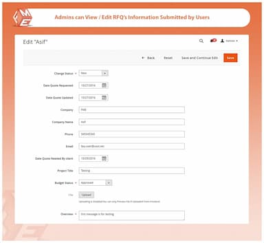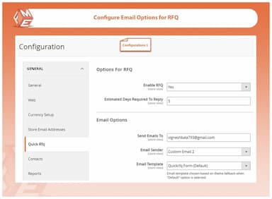 L'estensione Magento RFQ invia notifiche via email all'amministratore e al cliente ogni volta che viene effettuata una richiesta di preventivo.