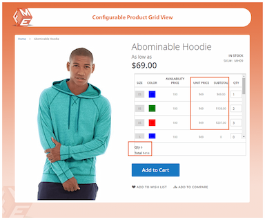 Magento 2 Configurable Product Grid View extension presents all product variations in a clear, interactive grid or matrix format.