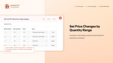 The Magento 2 Customer Group Pricing extension lets you adjust product prices across the entire catalogue or for selected items based on customer groups or individual users. You can apply fixed or percentage-based discounts, increase prices, and set tiered pricing for quantity ranges. With options to define minimum and maximum order quantities and display personalised messages, this extension helps build loyalty and reward specific buyers.