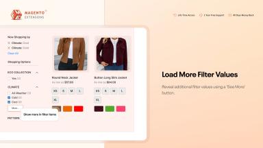 When filters have too many values, such as a brand filter with hundreds of names, the list can overwhelm users. The ‘More’ option solves this by showing a few values first and letting customers expand the rest if needed. This keeps navigation tidy, improves usability, and ensures customers don’t feel overloaded by too many choices at once.