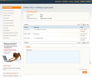 - Automated email notifications keep customers informed and assures them that their ticket has been posted. Customers can view their ticket status and priority from my account section and send messages to the respective department.
