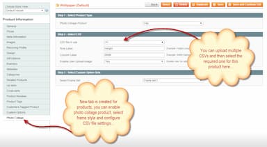 This is a new tab, which is created for your products by this module. Click on any product to configure following photo collage settings: