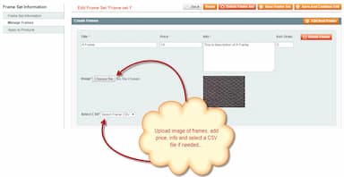 Next, you can add frames, upload CSV file and configure product settings, which are defined below.
