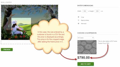- CSV pricing featured is included. This will calculate price of a cropped image from the CSV file