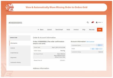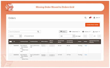 Deze extensie vindt automatisch bestellingen die niet worden weergegeven in de administratie, ondanks dat ze succesvol zijn betaald en voltooid. De extensie spoort de ontbrekende bestellingen van Magento 2 op en toont ze in een apart gedeelte, zodat u ze kunt herkennen en registreren.