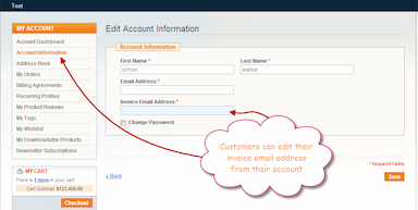 - Can select the option to send invoices to both email addresses provided during checkout in billing section