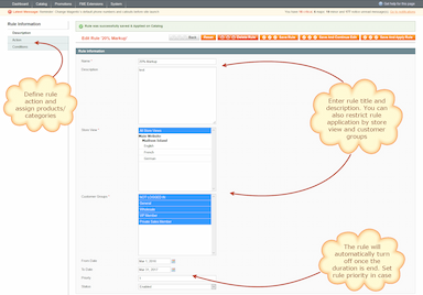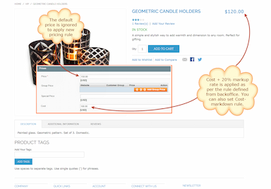 De Magento kostprijsmodule geeft u de mogelijkheid om prijsregels te maken en deze te koppelen aan de volledige catalogus of te beperken tot bepaalde producten.