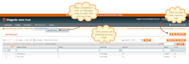 Activeer de Magento prijsupdate op uw winkel op basis van de kosten + markeringformule door deze module te gebruiken. U kunt regels definiëren om automatisch prijsmarkering toe te passen of het bedrag te verlagen in plaats van dit handmatig te doen.
