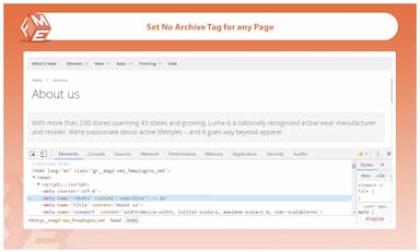 The tool helps you add NoArchive tag to products, categories, and CMS pages of your online store to show fresh copies of web pages to the users rather than the saved ones. Enable Noarchive tag for;