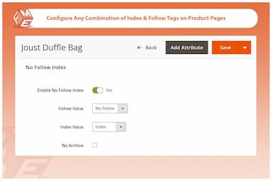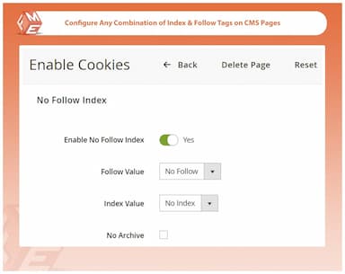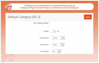 With Magento no-follow no-index extension, you can create any of the following four combinations with the addition of a no-archive tag to control web crawlers’ access to different webpages.