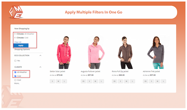- Enables customers to select multiple attribute values within the same or different filter.